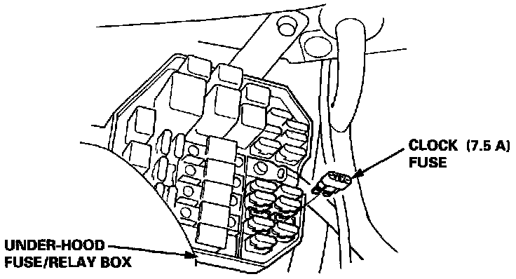 NOTE: Disconnecting the CLOCK fuse also cancels the radio preset stations and the clock setting.