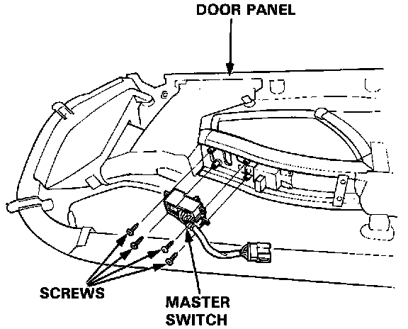 1. Remove the door panel.2. Remove the four screws, then remove the power window switch from the door panel.