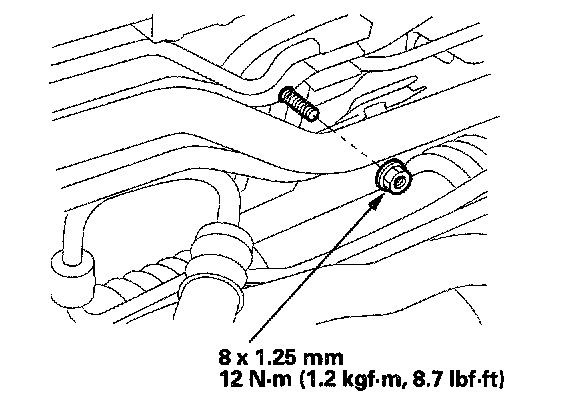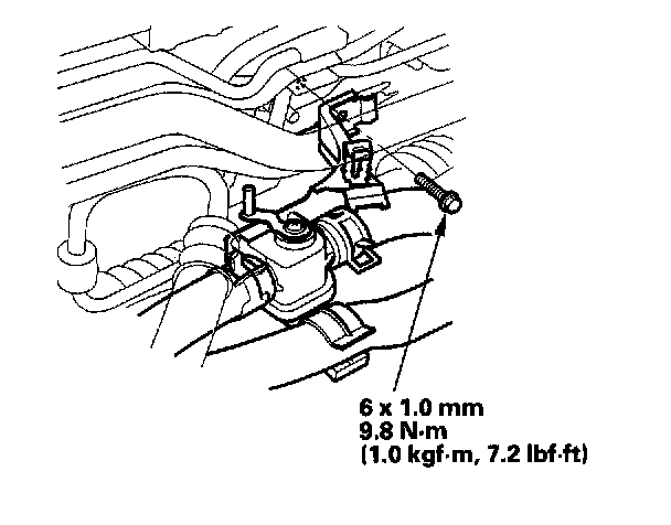 8. Remove the mounting nut from the heater unit. Take care not to damage or bend the fuel lines and the brake lines, etc.