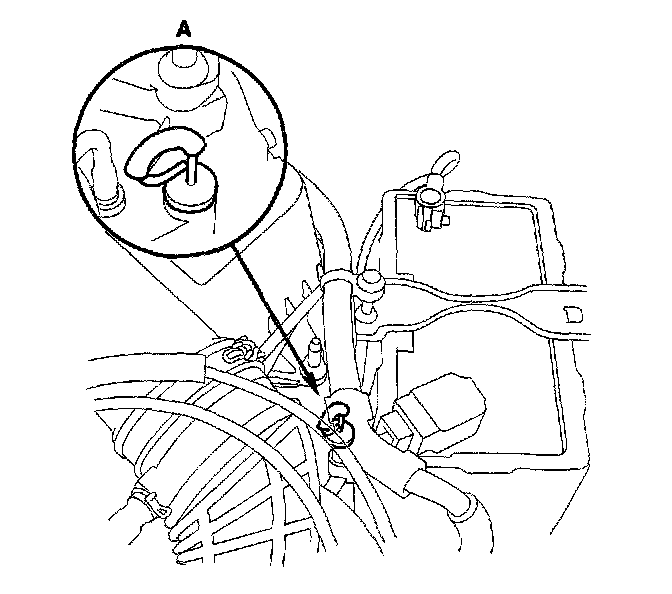 3. Remove the dipstick (yellow loop) (A) from the transmission, and wipe it with a clean cloth.