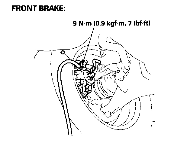 4. Loosen the left-front brake bleed screw to allow air to escape from the system. Then tighten the bleed screw securely.