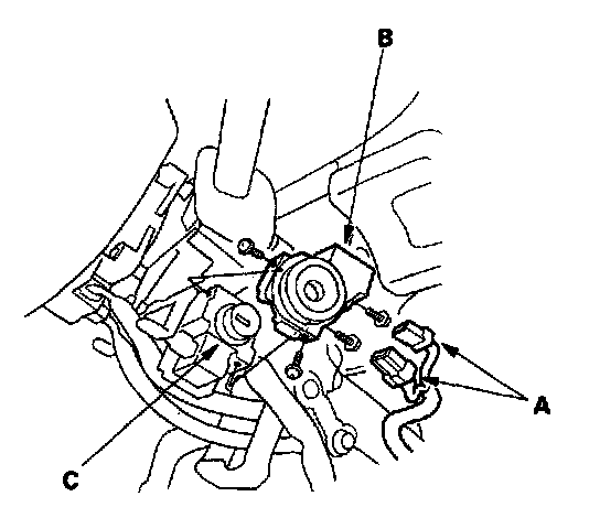 4. Remove the screws and the immobilizer receiver unit from the ignition key cylinder (C).