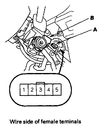 4. Disconnect the 5P connector (A) from the immobilizer receiver unit (B).