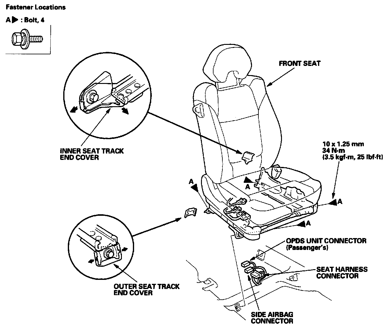 - The passenger's seat is shown; the driver's seat is similar but it does not have an OPDS unit.