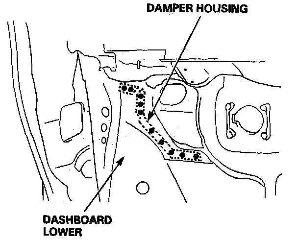 - From the passenger compartment side, plug weld the holes in the dashboard lower and damper housing.