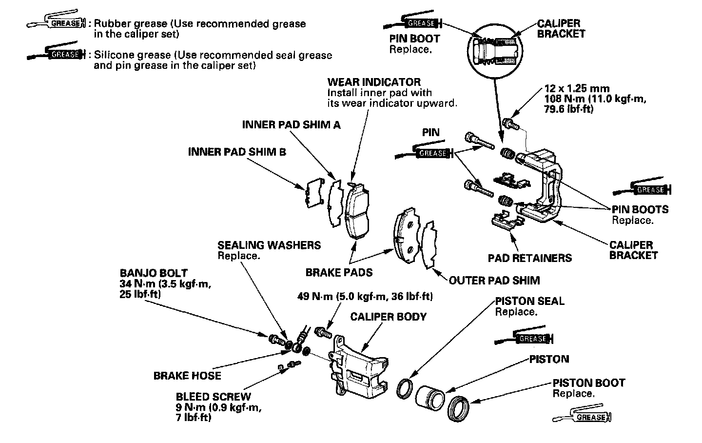 - Make sure no grease or oil gets on the brake discs or pads.