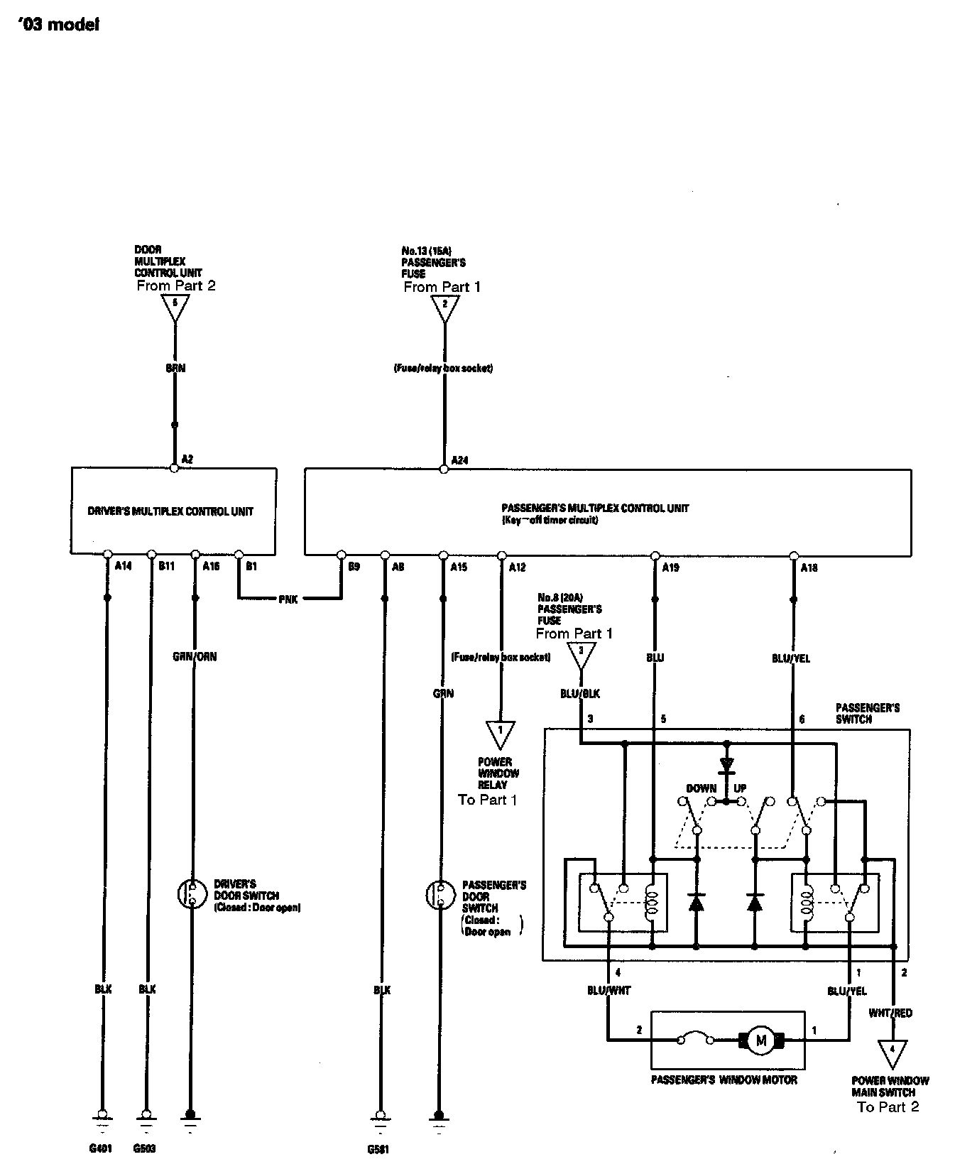 Power Windows - Circuit Diagram ('03 Model) Part 1: