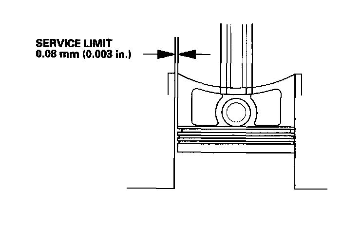 4. If scoring or scratches are still present in the cylinder bores after honing to the service limit, rebore the cylinder block. Some light vertical scoring and scratching is acceptable if it is not deep enough to catch your fingernail and does not run the full length of the bore.