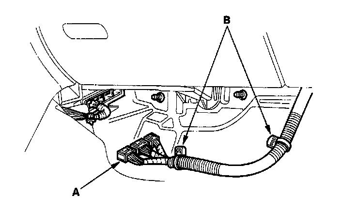24. Disconnect the Engine Control Module (ECM)/ Powertrain Control Module (PCM) connectors (A) from the ECM/PCM, and remove the harness clamps (B).