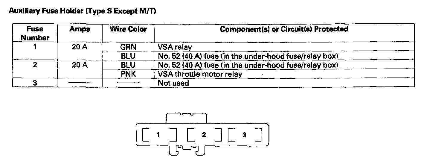 Auxiliary Fuse Holder (Type S Except M/T):