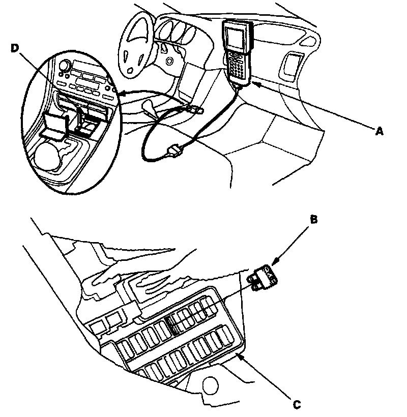 - Use the OBD II Scan Tool or the Honda PGM Tester (A).