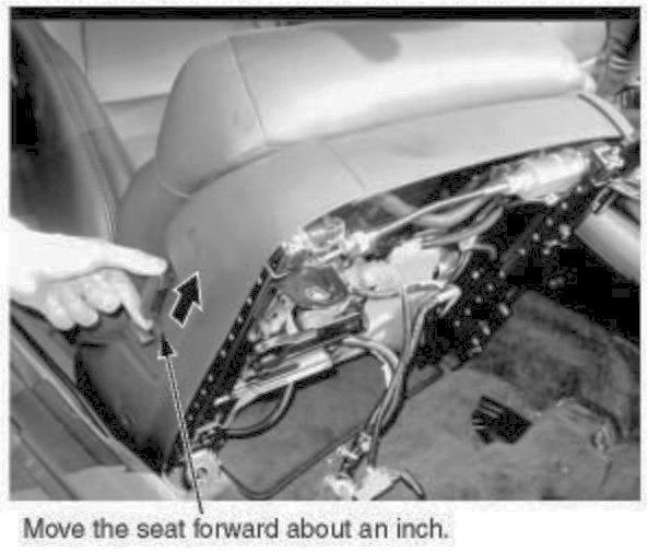 9. Reinstall the seat, and torque the mounting bolts to 34 N.m (25 lb-Ft.).