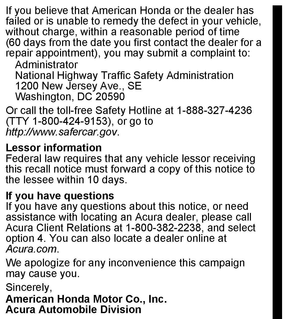 Should a dealership sell an unrepaired vehicle that subsequently causes an injury or damage because of the recalled item, the dealership will be solely responsible to the damaged party, and will be required to defend and indemnify American Honda for any resulting claims. To see if a vehicle in inventory is affected by this campaign, do a VIN status inquiry before selling it.