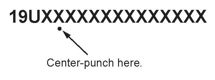 12. Center-punch a completion mark below the fifth character of the engine compartment VIN: