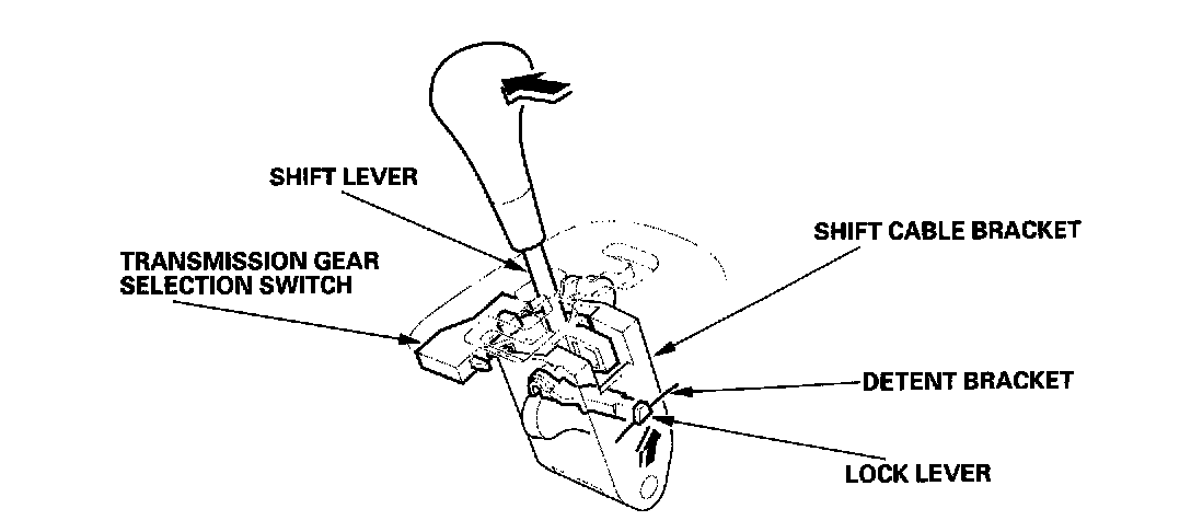 When the shift lever shifts to the sequential sportshift mode position, the lock lever is released, and it pops up to engage the shift cable bracket to the detent bracket; the shift cable bracket and the shifting positions in the transmission are held in the D5 position.
