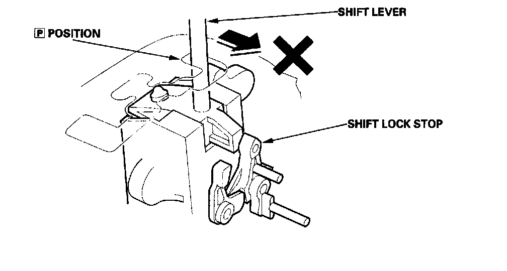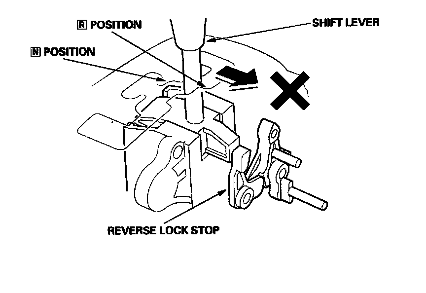 If the allowable conditions for turning ON the solenoid are not met, the shift lock solenoid remains OFF, and the reverse lock stop locks to block the shift lever in the N position.