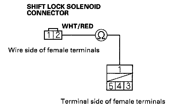 14. Check for continuity between the No. 1 terminal of the shift lock relay socket and the No. 2 terminal of the shift lock solenoid connector.