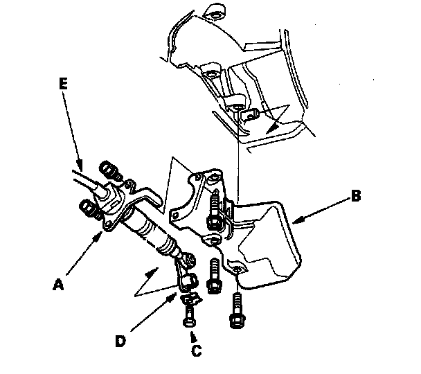14. Install the lock bolt (D) with a new lock washer (E), then bend the lock washer tab against the bolt.