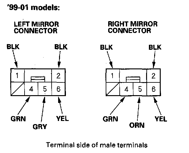 Power Mirror Actuator Replacement1. Remove the power mirror from the door, and disconnect the 6P ('99-01 models) or 13P ('02-03 models) connector.