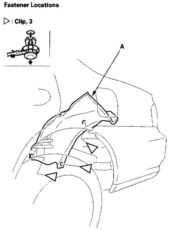 Fuel Pipe Protector Replacement1. Remove the clips, then remove the fuel pipe protector (A). Take care not to scratch the body.