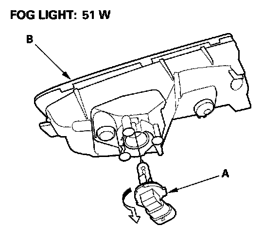 4. Turn the bulb socket (A) 45 ° counterclockwise to remove it from the housing (B).