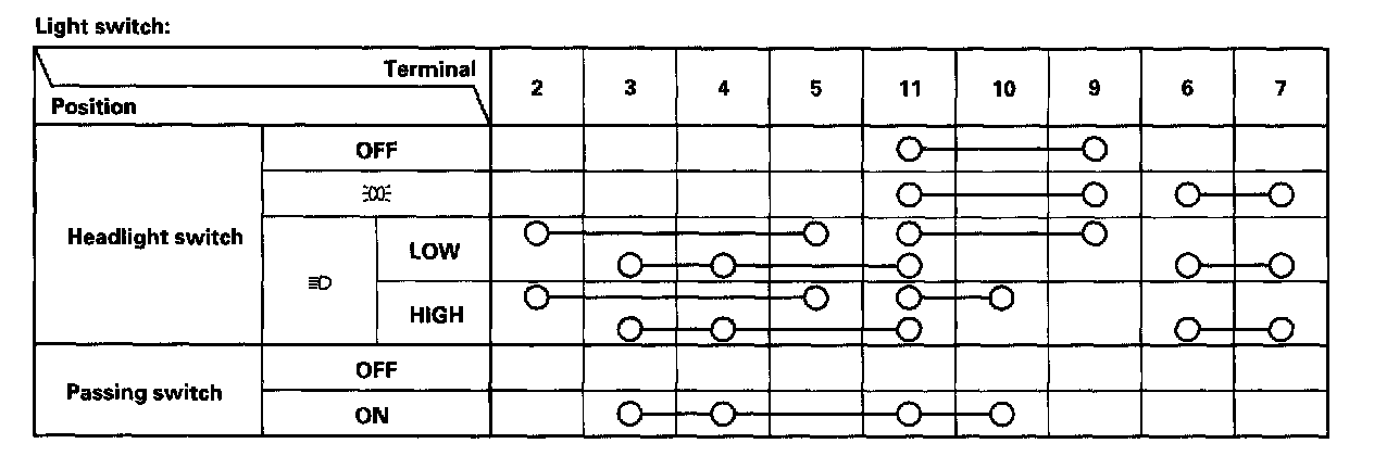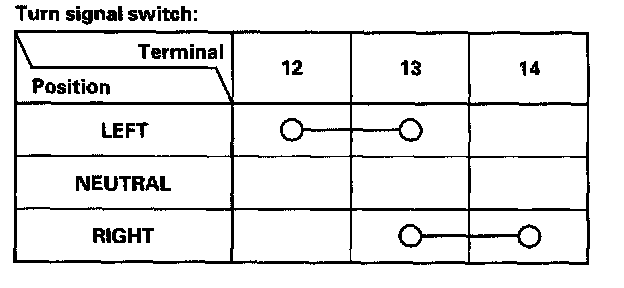 - If the terminals look OK, check for continuity between the terminals in each switch position according to the tables.