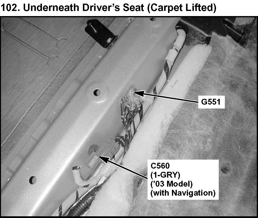 102. Underneath Driver's Seat (Carpet Lifted):