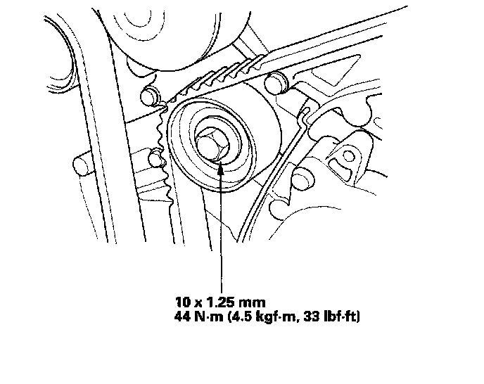 Timing Belt InstallationNOTE: The following procedure is for installing a new timing belt. If you are installing a used timing belt, refer to the next procedure.