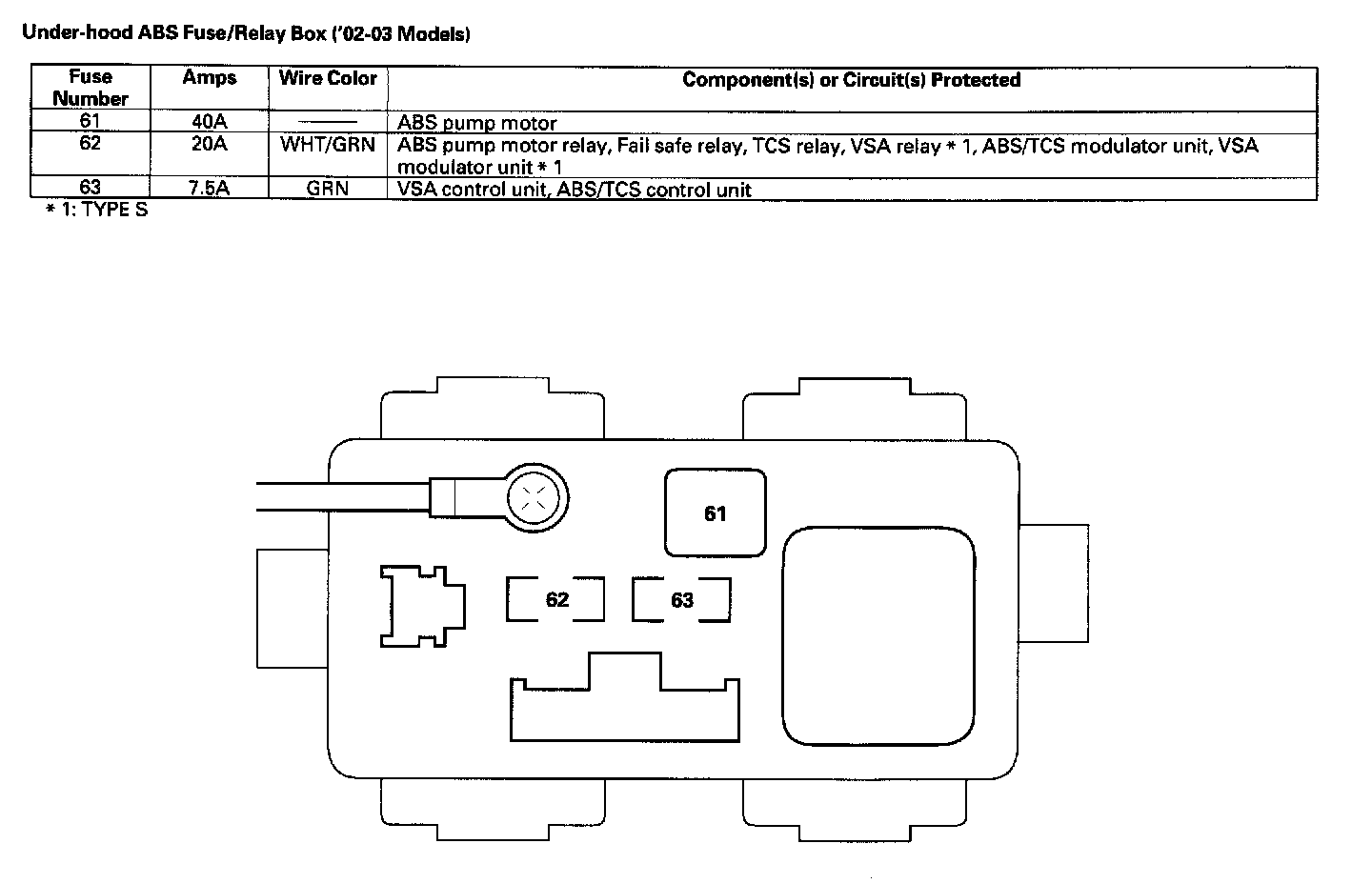 Under-hood ABS Fuse/Relay Box (02-03 Models):