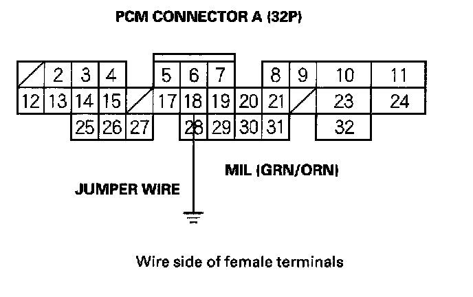 5. Connect PCM connector terminal A18 and body ground with a jumper wire.