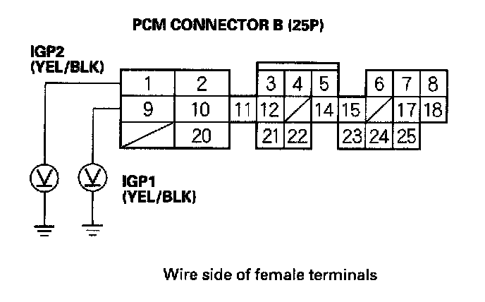 - An open in the wire(s) between the PGM-FI main relay and PCM connector terminals B1 and B9.