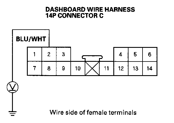 3. Connect the C2 terminal to the positive probe of a voltmeter, and connect the negative probe to body ground. To prevent damage to the gauge assembly, lay the gauge assembly on a shop rag.