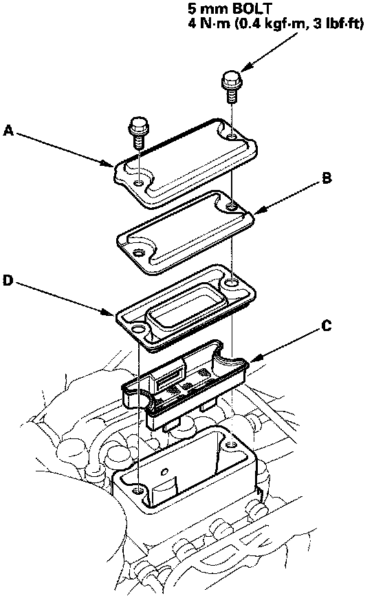 2. Remove the reservoir cap (A), diaphragm plate (B), filter (C), and diaphragm (D).