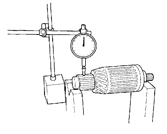 - If the commutator runout is not within the service limit, replace the armature.