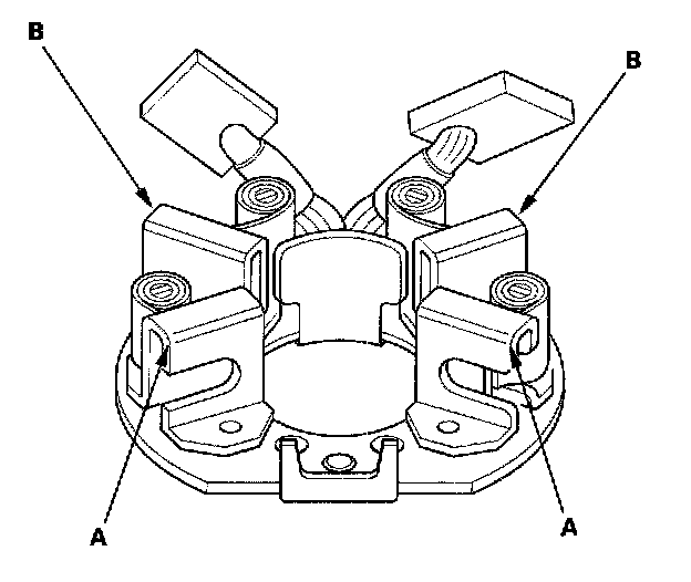 12. Check that there is no continuity between the (+) brush holder (A) and (-) brush holder (B). If there is continuity, replace the brush holder assembly.