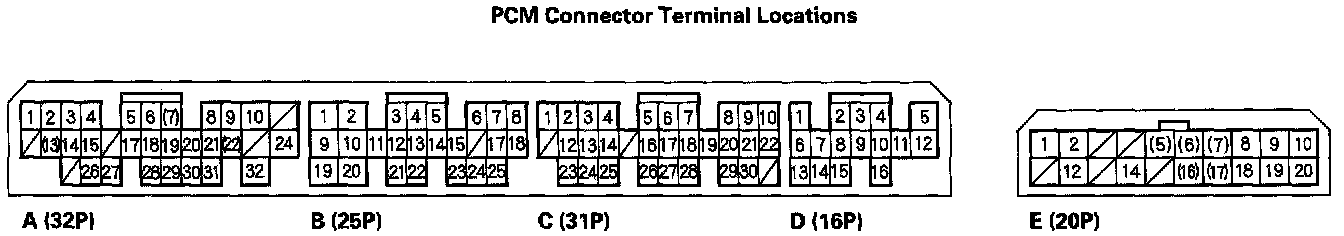 The PCM receives input signals from the various sensors and switches, performs processing data, and outputs a current to the A/T clutch pressure control solenoid valves A, B, and C.