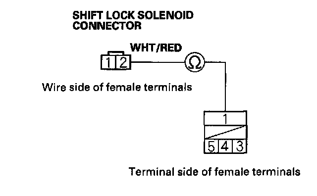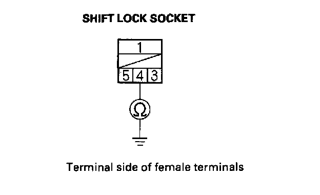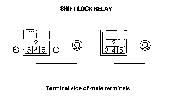 14. Check for continuity between the No. 1 terminal of the shift lock relay socket and the No. 2 terminal of the shift lock solenoid connector.