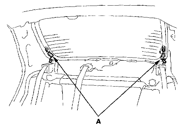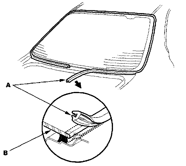4. Remove the molding (A) from the edge of the rear window (B). If necessary, cut the molding with a utility knife.