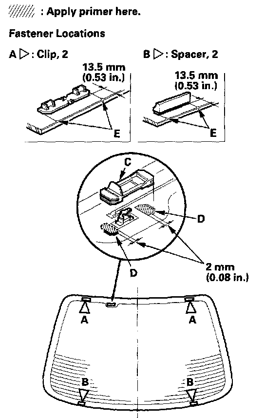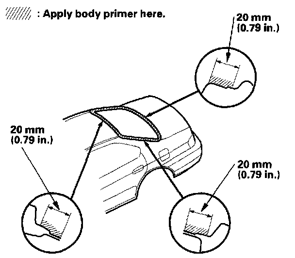 - Never touch the primed surfaces with your hands. If you do, the adhesive may not bond to the rear window properly, causing a leak after the rear window is installed.