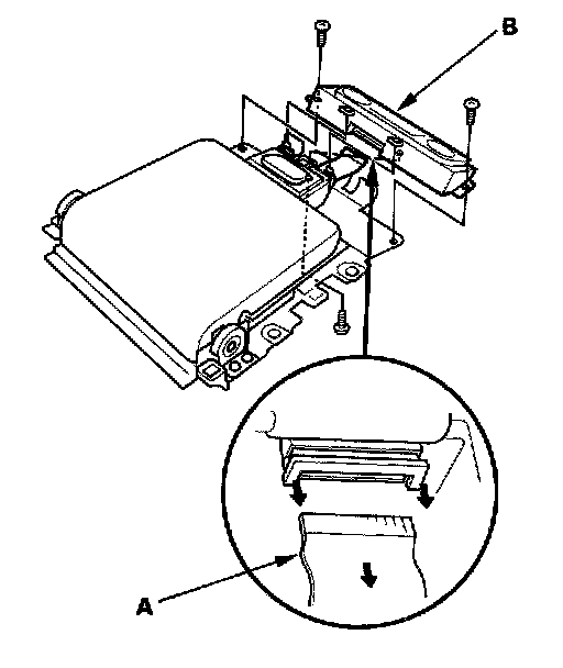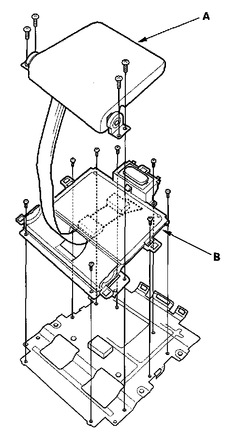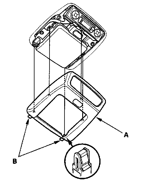 1. Remove the display cover (A) by pulling down on the rear. There are hooks (B) on the front.
