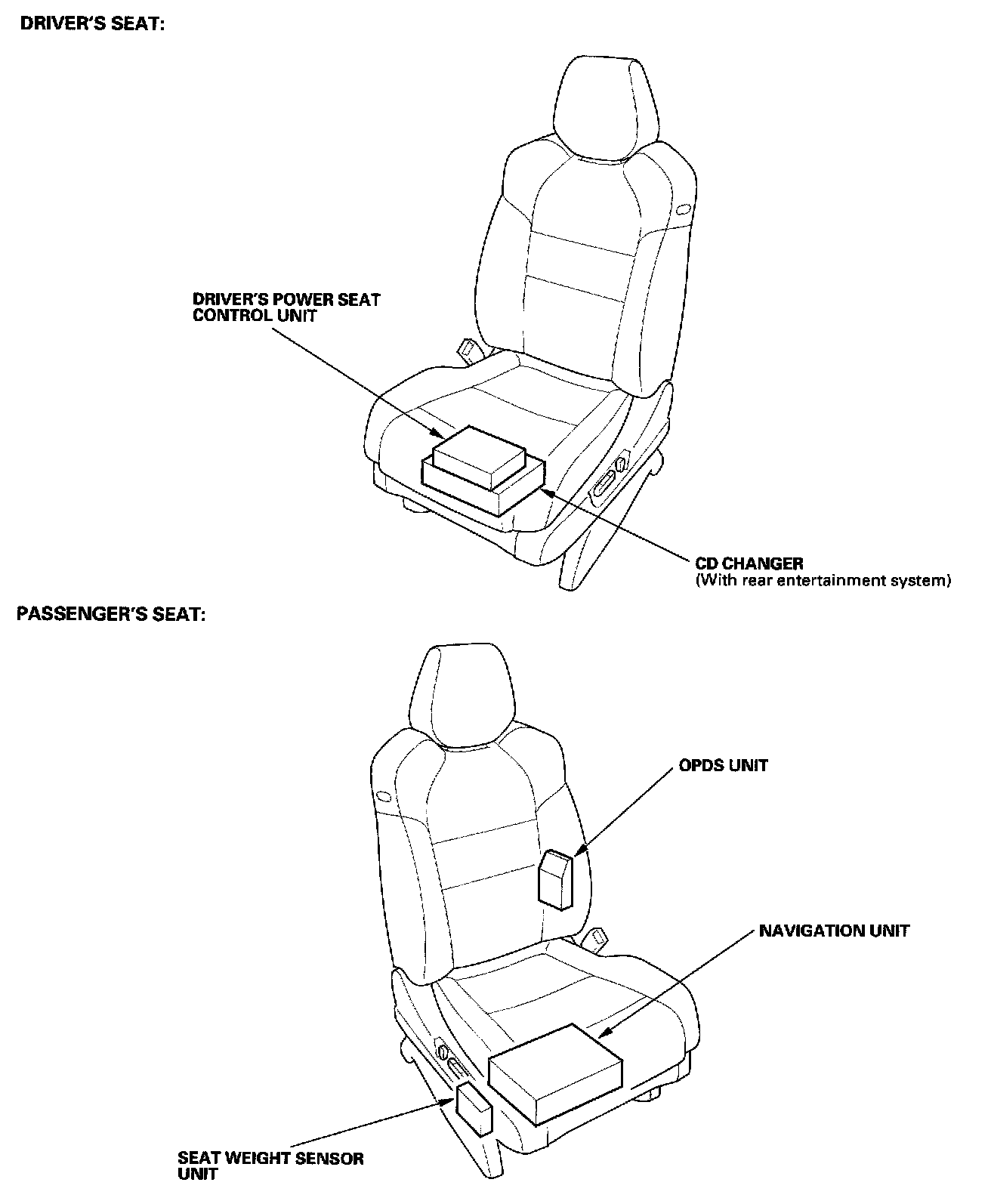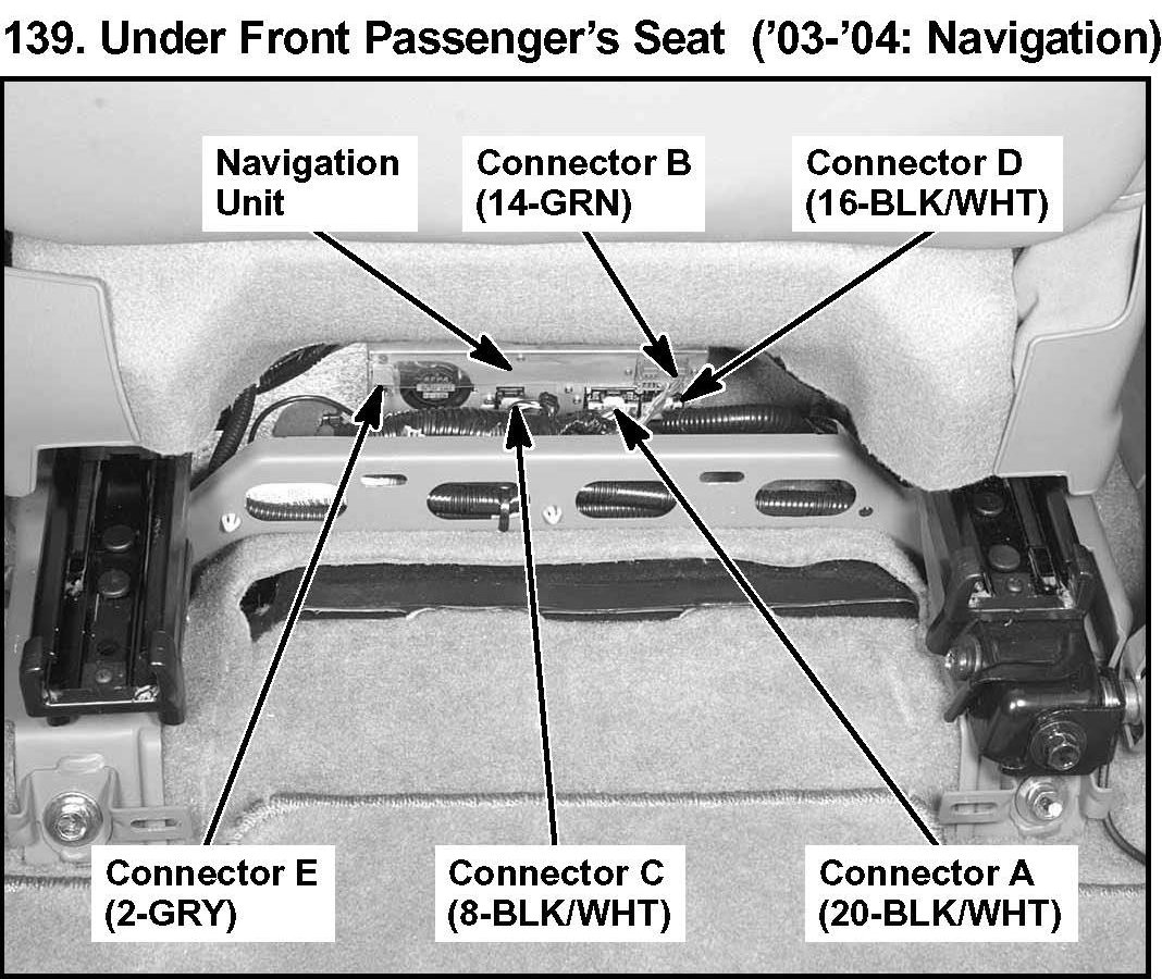 139. Under Front Passenger's Seat ('03-'04: Navigation):
