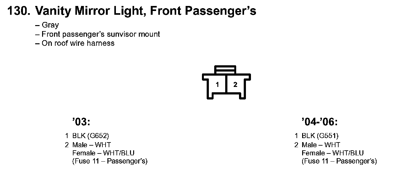 130. Vanity Mirror Light, Front Passenger's: