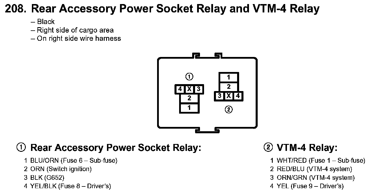 208. Rear Accessory Power Socket Relay And VTM-4 Relay: