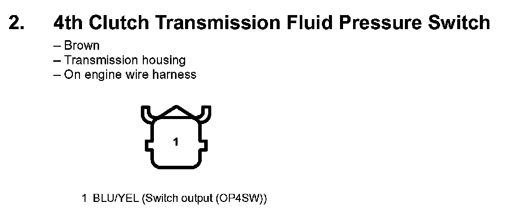2. 4th Clutch Transmission Fluid Pressure Switch: