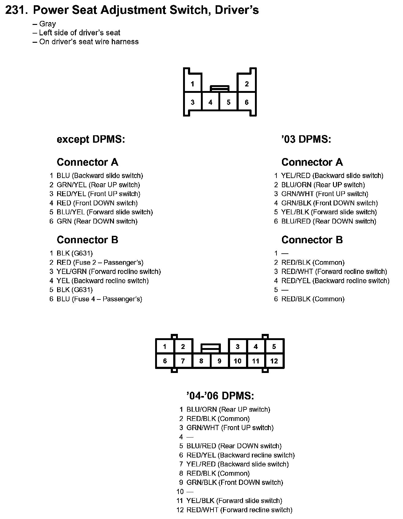 232. Power Seat Adjustment Switch, Front Passenger's (DPMS):