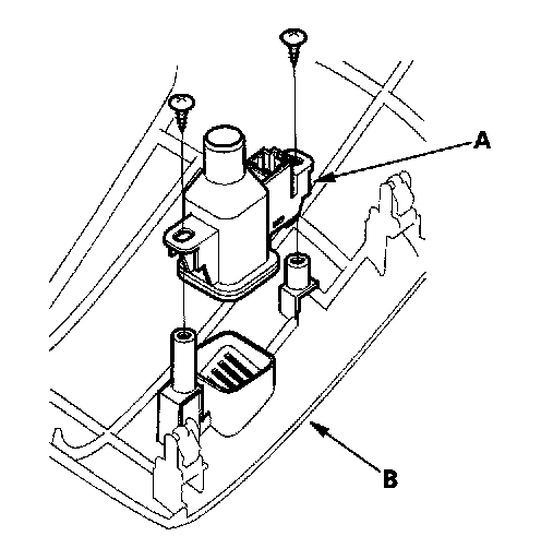 2. Remove the self-tapping screws and the in-car temperature sensor (A) from the driver's dashboard lower cover (B).