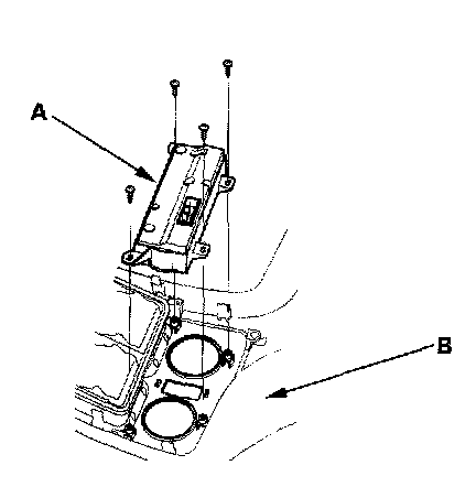 2. Remove the self-tapping screws and the rear heater-A/C control unit (A) from the console rear trim (B).