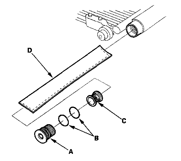 2. Remove the cap (A) from the bottom of the condenser, then remove the O-rings (B), the filter (C) and the desiccant (D).