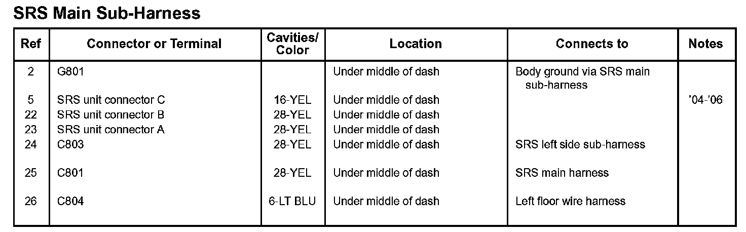 SRS Main Sub-Harness: