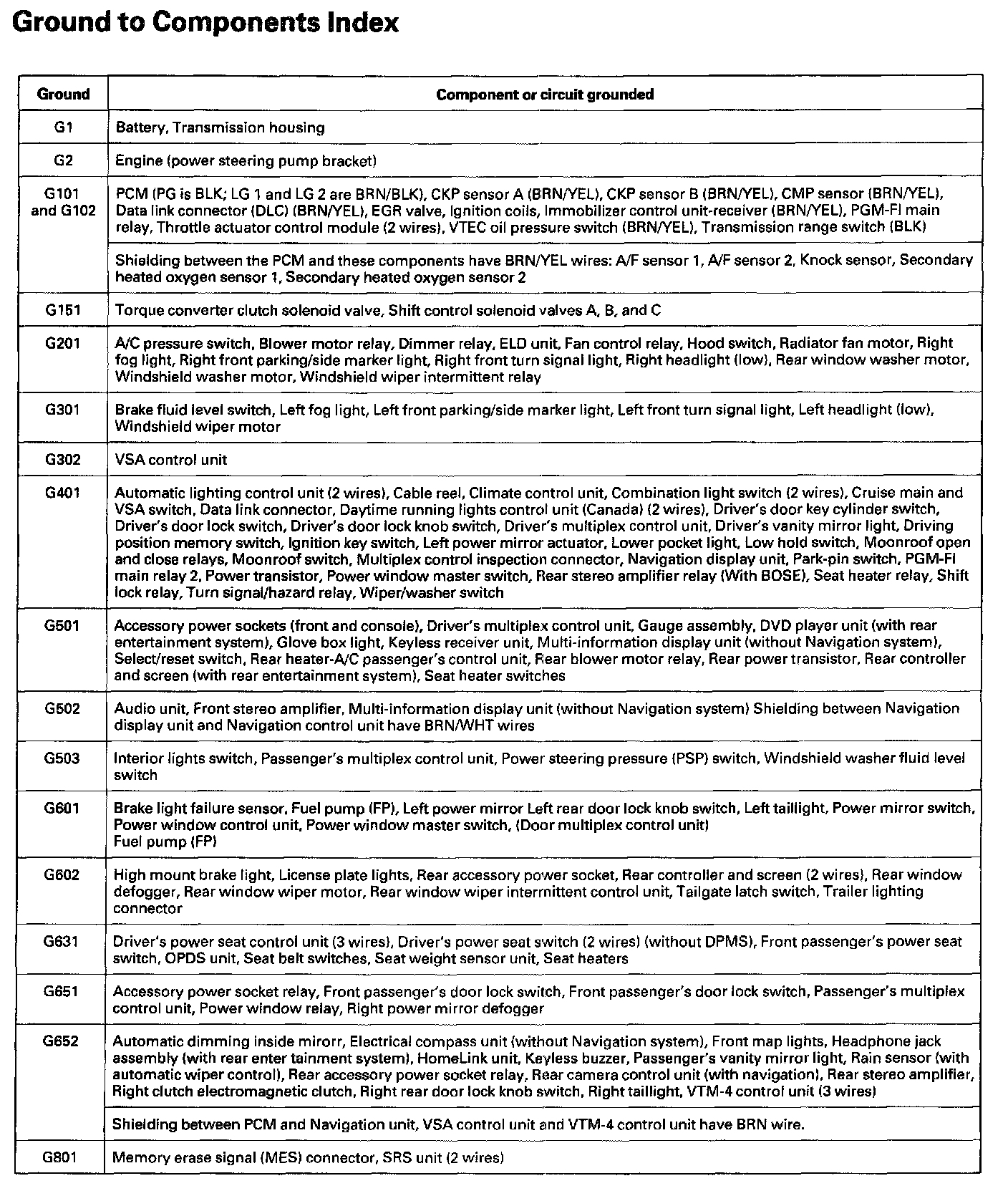 Ground To Components Index: